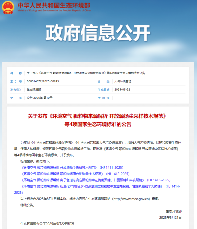 環(huán)境空氣顆粒物來源解析是大氣污染防治的重要技術(shù)手段,其中左旋葡聚糖、甘露聚糖和半乳聚糖作為生物質(zhì)燃燒的特征標志物,其準確測定對識別顆粒物來源(如秸稈焚燒、木柴燃燒等)具有關(guān)鍵意義。此前,國內(nèi)針對這三類物質(zhì)的檢測方法缺乏統(tǒng)一標準,技術(shù)體系分散,制約了源解析結(jié)果的可比性和科學性。本標準的發(fā)布,填補了我國在該領(lǐng)域的標準空白。