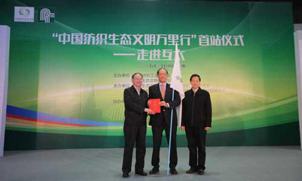 2015年1月16日,由中國(guó)紡織工業(yè)聯(lián)合會(huì)、中國(guó)生態(tài)文明研究與促進(jìn)會(huì)主辦、中國(guó)生態(tài)文明研究與促進(jìn)會(huì)紡織工作委員會(huì)、中國(guó)紡織工業(yè)聯(lián)合會(huì)環(huán)境保護(hù)與資源節(jié)約促進(jìn)委員會(huì)、互太(番禺)印染有限公司承辦,中國(guó)紡織工業(yè)聯(lián)合會(huì)新聞中心協(xié)辦的“中國(guó)紡織生態(tài)文明萬(wàn)里行”首站儀式在互太(番禺)印染有限公司隆重舉行。BjT京誠(chéng)節(jié)能總經(jīng)理吳星星帶領(lǐng)節(jié)能小組全體成員參加了儀式。