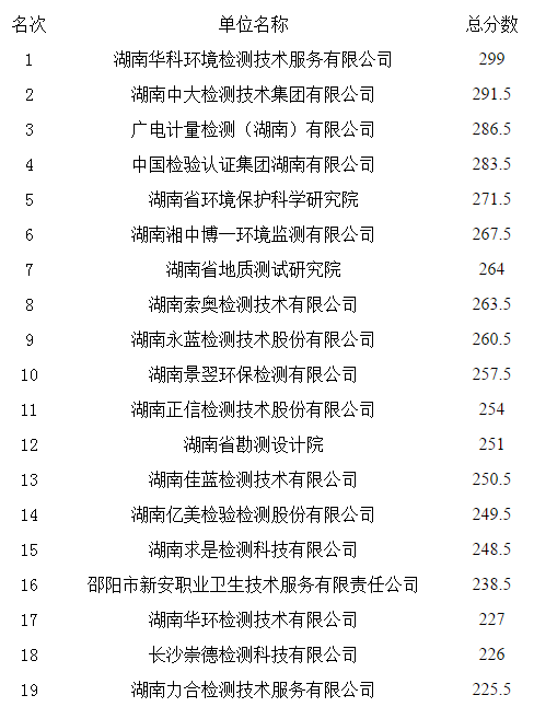 根據(jù)《關(guān)于舉辦湖南省第十三屆生態(tài)環(huán)境監(jiān)測(cè)專業(yè)技術(shù)人員大比武活動(dòng)的通知》(湘環(huán)發(fā)[2019]11號(hào))要求,經(jīng)報(bào)名、審核、公示,共有33個(gè)社會(huì)機(jī)構(gòu)的152名隊(duì)員參加了7月8日舉行的社會(huì)機(jī)構(gòu)綜合組預(yù)選賽。預(yù)選賽整個(gè)過程由省生態(tài)環(huán)境廳紀(jì)檢全程監(jiān)督。本次預(yù)選賽取團(tuán)體成績(jī)進(jìn)行排名(有4個(gè)隊(duì)員參賽的,取4個(gè)隊(duì)員成績(jī)之和;有5個(gè)隊(duì)員參賽的取本隊(duì)成績(jī)前4名之和)。預(yù)選賽排名前20的隊(duì)伍入圍省級(jí)決賽。