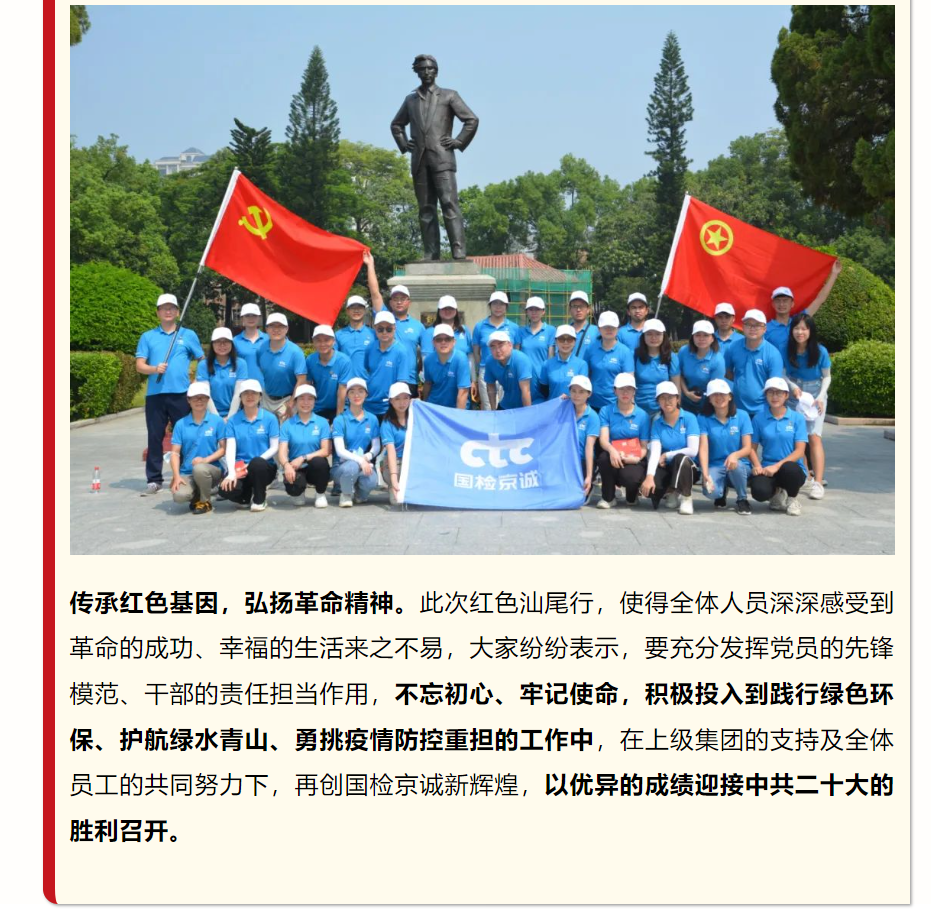 回望歷史來路、追尋紅色圣地。9月17日至18日,于九一八事變爆發(fā)91年之際,國檢京誠黨支部開展“紅色汕尾行”活動,公司黨員干部、入黨積極分子30余人參加了此次活動。